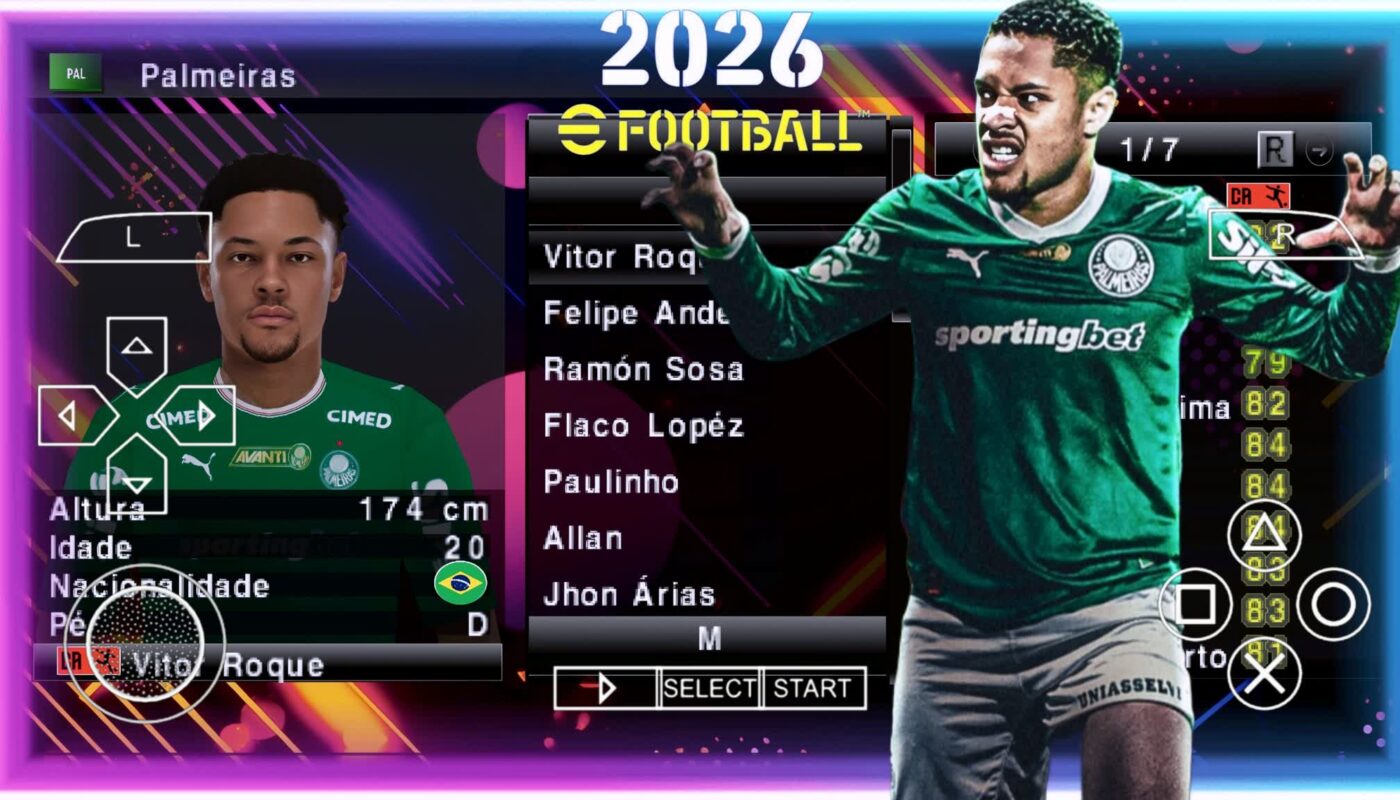 EFOOTBALL PES 2026 PPSSPP SUL AMERICANO BRASILEIRÃO NOVAS FACES REALISTAS ELENCOS ATUALIZADOS 60 ESTÁDIOS + KITS 25/26